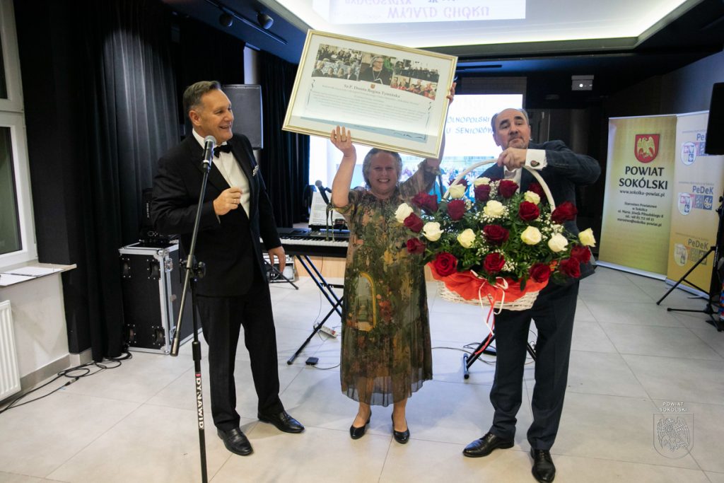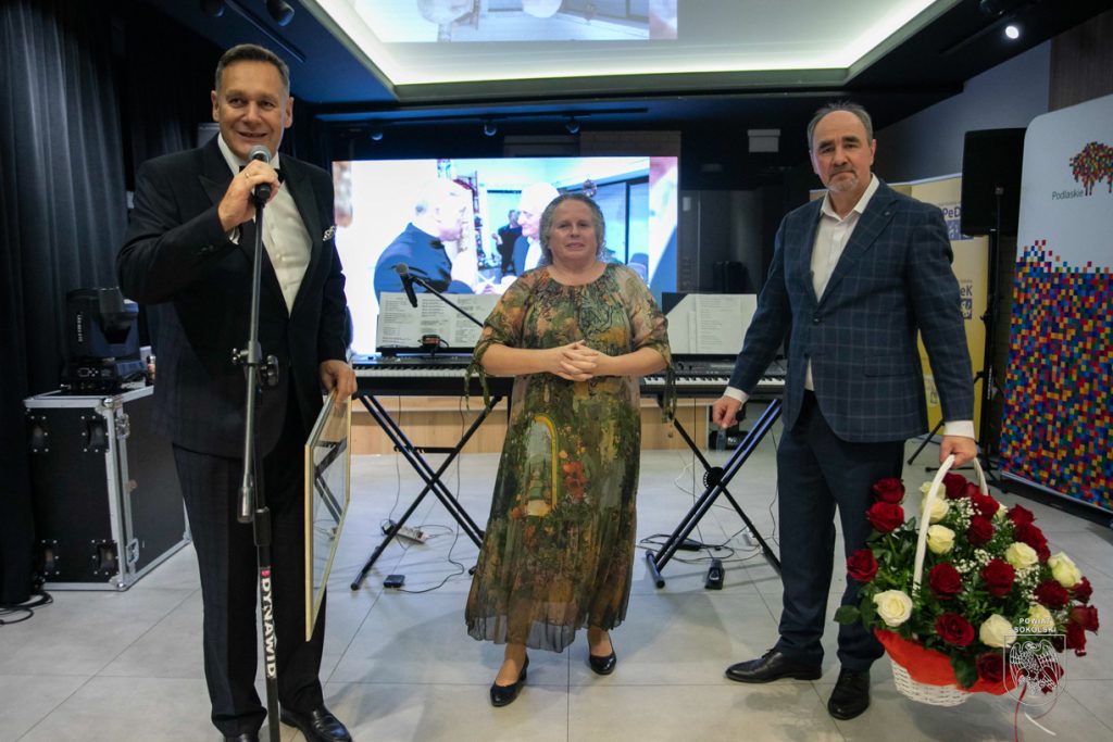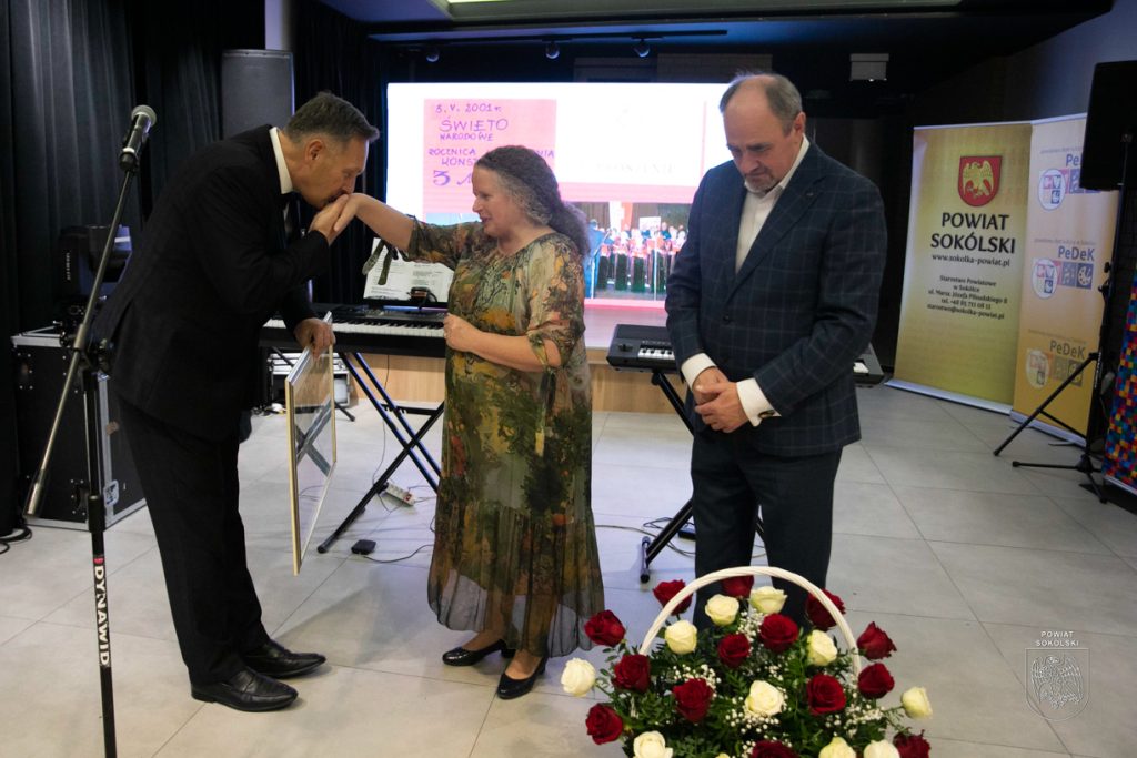 Podczas jubileuszu gratulacje skierował także starosta sokólski Piotr Rećko, który szczególnie podziękował Dorocie Tymińskiej – kierownik artystycznej i dyrygentce chóru – za wytrwałość: